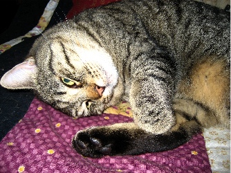 Hier ist Streifchen, unser Gastkater und Neko unser